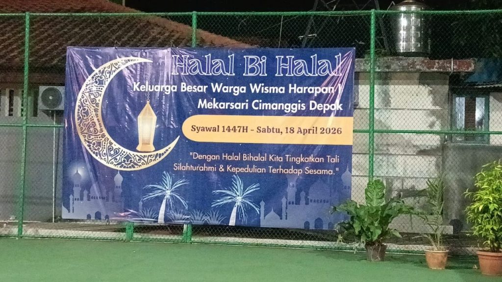 Semangat inilah yang terasa kuat pada Sabtu malam, 18 April 2026, ketika warga Komplek Wisma Harapan 1 kembali menggelar acara halal bi halal. Bertempat di lapangan tenis kompleks, acara dimulai pada pukul 20.00 WIB dengan suasana yang hangat dan penuh kebersamaan. Beberapa hari sebelumnya, panitia telah menyebarkan undangan secara online melalui grup WhatsApp warga. Dalam undangan tersebut, tidak hanya disampaikan informasi waktu dan tempat, tetapi juga tata tertib acara serta dresscode yang perlu diperhatikan.